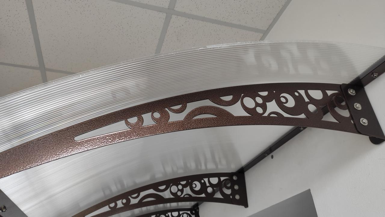 Подробные характеристики Металический сборный навес (козырек) над дверью Dash'Ok 4,05x1.5 м Style, тем-серый, мон 3 мм, прозр.