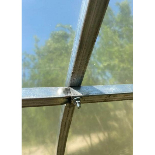 Это арочный каркас теплицы "Дарина" изготовлен из оцинкованной стальной трубы. Размеры трубы 20х20мм, толщина 0,8мм, расстояние между арками 1м.