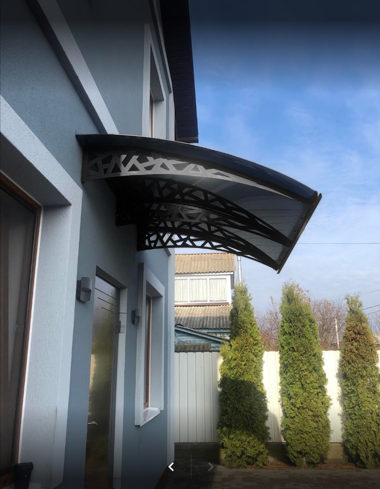 Виготовлений з високоякісного полікарбонату, цей навіс є міцним та стійким до ультрафіолетових променів, що забезпечує тривалий термін служби без вигорання або пошкоджень. Полікарбонат також має високу прозорість, дозволяючи достатньо природного світла проникати до входу.