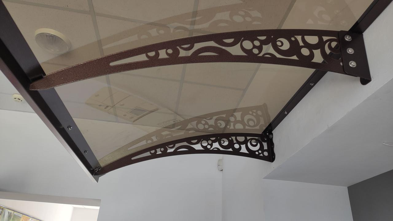 Виготовлений з високоякісного полікарбонату, цей навіс є міцним та стійким до ультрафіолетових променів, що забезпечує тривалий термін служби без вигорання або пошкоджень. Полікарбонат також має високу прозорість, дозволяючи достатньо природного світла проникати до входу.