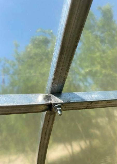 Это арочный каркас теплицы "Дарина" изготовлен из оцинкованной стальной трубы. Размеры трубы 20х20мм, толщина 0,8мм, расстояние между арками 1м.
